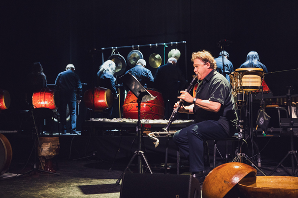 Louis Sclavis le clarinettiste et saxophoniste de jazz, Les Percussions de Treffort et le percussionniste Keyvan Chemirani (Trio Chemirani) avec son instrument fétiche, le zarb, se produiront, en avant-première, sur la scène du 6MIC à Aix-en-Provence, avec la pièce “Au-dessus de l’obscurité”, composition originale et collective de Louis Sclavis, le Jeudi 24 novembre 2022 à 20h30.